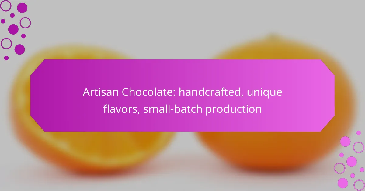 Artisan chocolate represents the pinnacle of handcrafted confectionery, showcasing unique flavors that distinguish it from mass-produced options. With a focus on small-batch production and meticulous craftsmanship, each piece reflects a dedication to quality and creativity, often incorporating local ingredients and innovative combinations. Explore the diverse world of artisan chocolate to experience a delightful array of tastes that cater to modern palates.