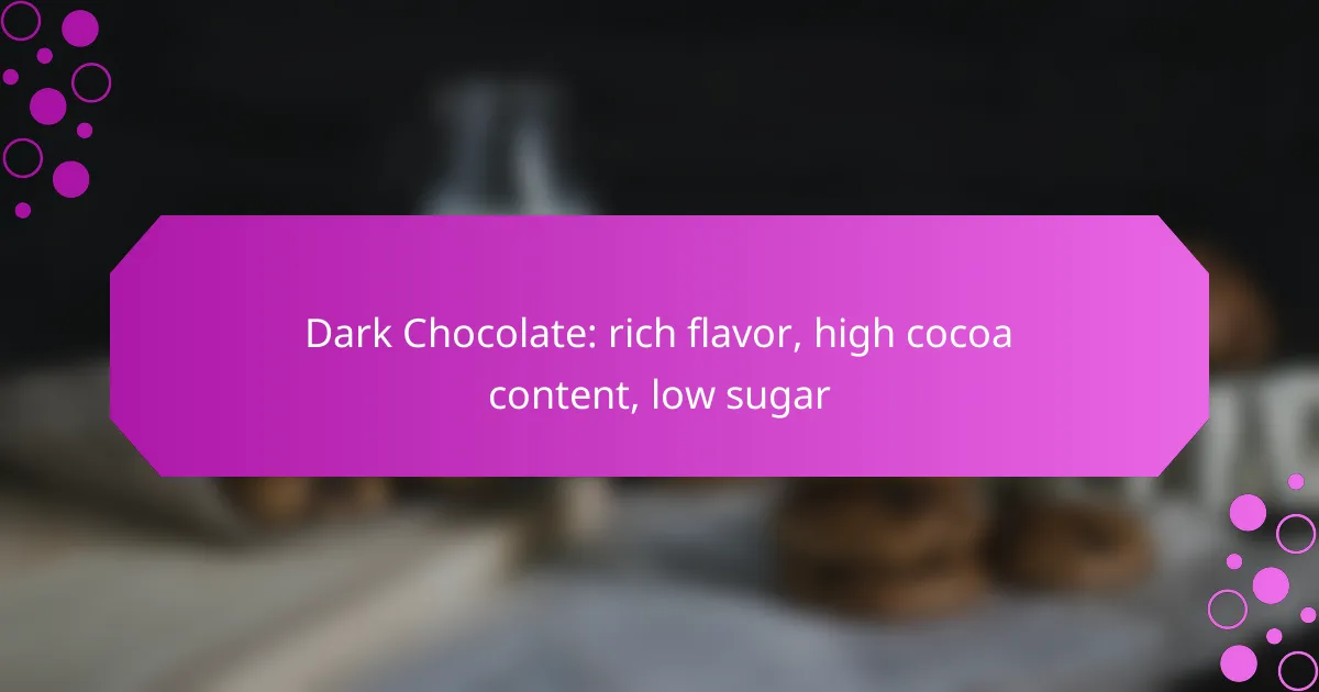 To select low sugar dark chocolate, prioritize products with high cocoa content and minimal added sugars. Look for options that balance rich flavor with healthier sweetening methods.