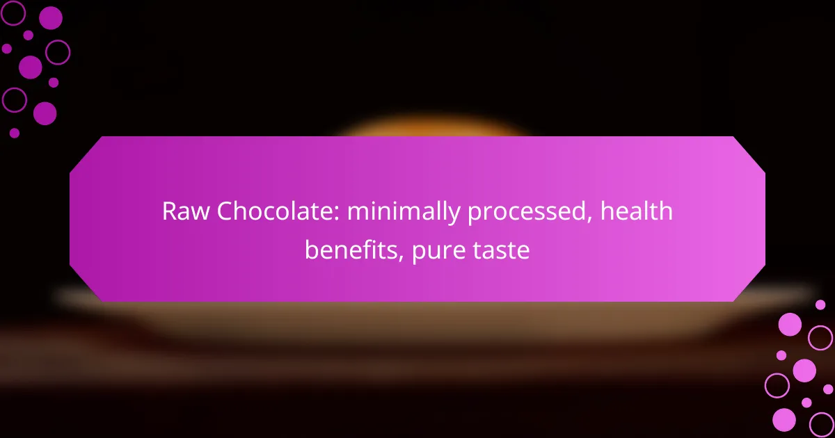 Raw chocolate, made from unroasted cocoa beans, is a minimally processed treat that retains essential nutrients and offers numerous health benefits. Rich in antioxidants, it supports heart health and can enhance mood, making it a delicious and nutritious addition to your diet. With its pure taste and unique flavor profile, raw chocolate stands apart from regular chocolate, providing a healthier alternative for chocolate lovers.
